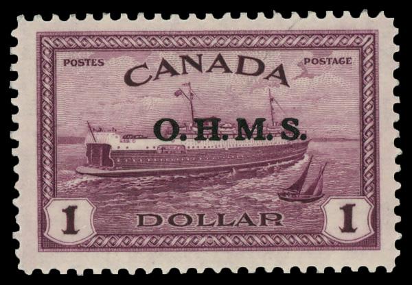Official, 1949, $1 Ferry, "O.H.M.S." overprint (Scott O10), single, o.g., never hinged, Fine to Very Fine. Scott $70. (Image)