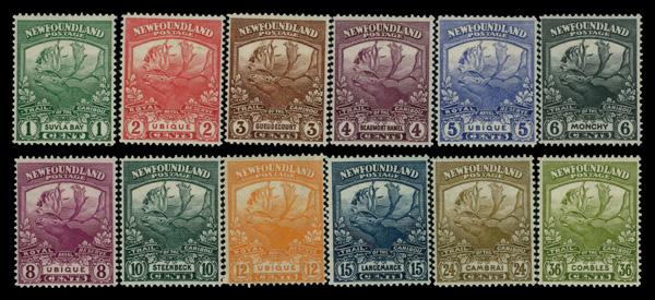 1919 Trail of the Caribou issue complete (Scott 115-126), complete set of singles, o.g., hinge remnant, Fine to Very Fine. Scott $294. (Image)