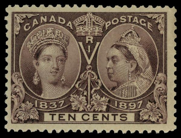 1897, Queen Victoria Jubilee, 10¢ brown violet (Scott 57), single, o.g., lightly hinged, Fine to Very Fine. Scott $160. (Image)