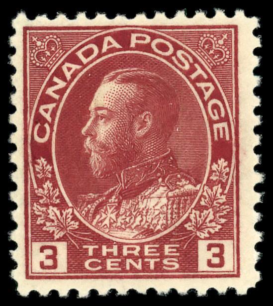 1923, King George V "Admiral", 3¢ carmine, Die I (Scott 109), o.g., never hinged, Fine to Very Fine. Scott $48. (Image)