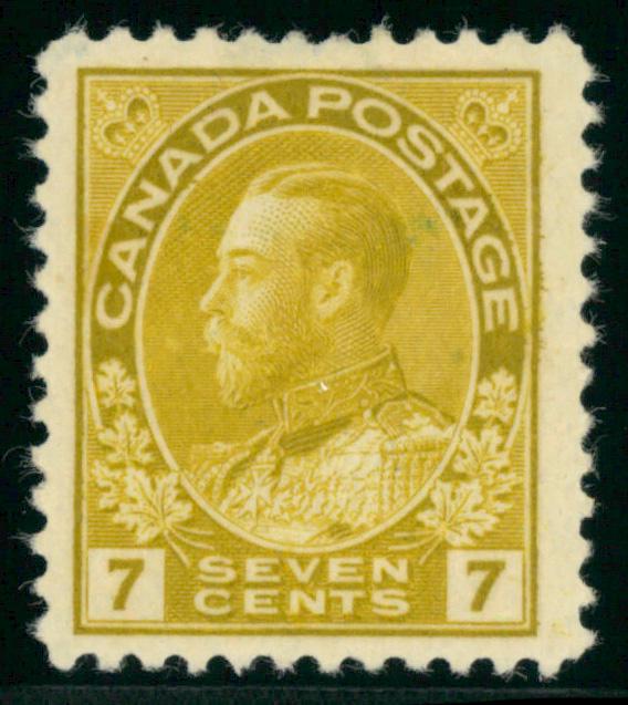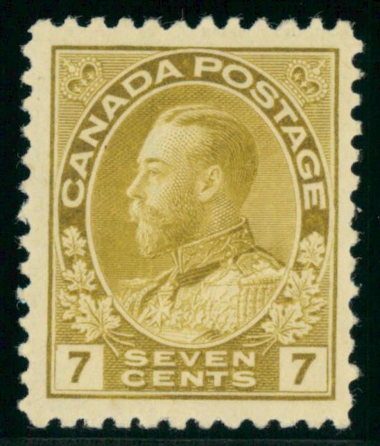 1915, King George V "Admiral", 7¢ olive bister (Scott 113a), o.g., hinge remnant, Very Fine. Scott $85. (Image)