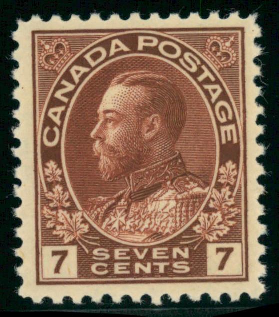 1924, King George V "Admiral", 7¢ red brown, wet printing (Scott 114b), o.g., lightly hinged, Very Fine to Extremely Fine. Scott $30. (Image)