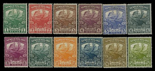 1919 Trail of the Caribou issue complete (Scott 115-126), complete set of singles, o.g., hinged, Fine to Very Fine. Scott $294. (Image)