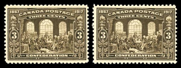 1917, 3¢ Confederation (Scott 135), two examples, o.g., never hinged, Fine to Very Fine. Scott $270. (Image)