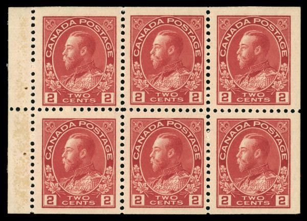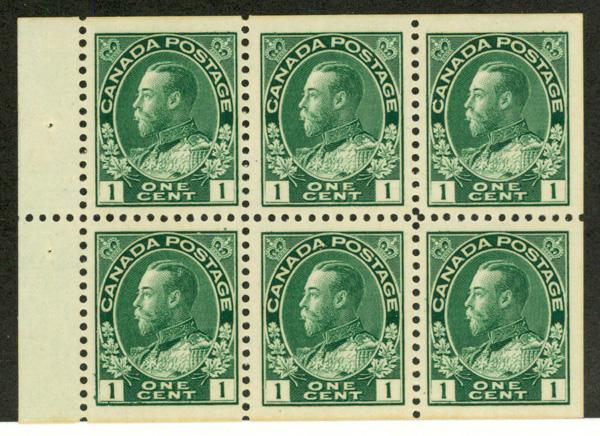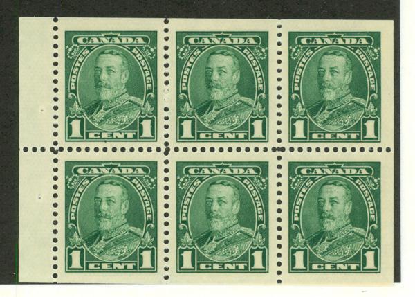 1935, King George V, 1¢ green (Scott 217b), booklet pane of 6, o.g., never hinged, Fine to Very Fine. Scott $80. (Image)