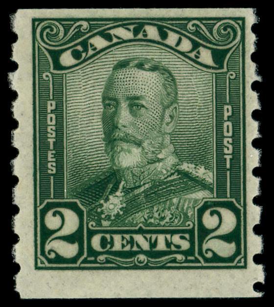 1929, King George V, 2¢ green coil (Scott 161), o.g., never hinged, Fine. Scott $80. (Image)