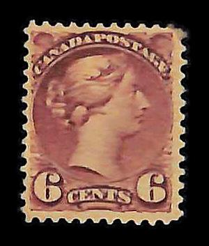 1888, Small Queen, 6¢ red brown (Scott 43), o.g., hinge remnant, Fine. Scott $225. (Image)