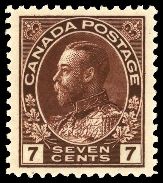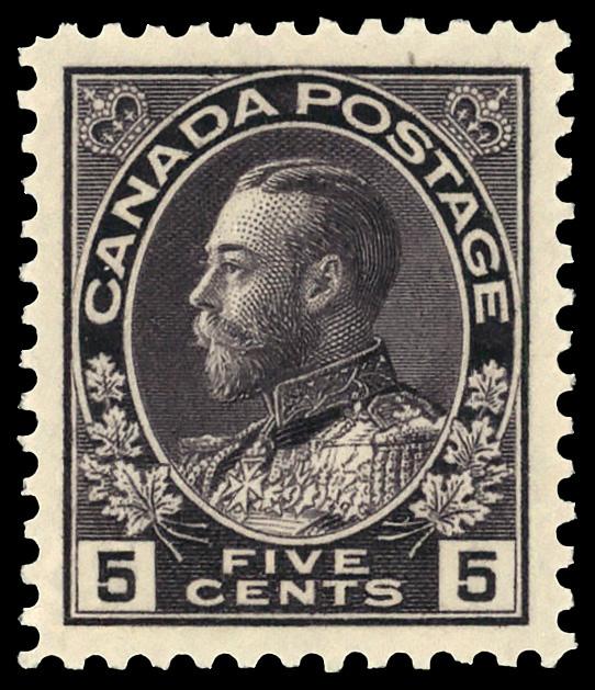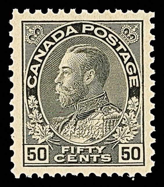 1925, King George V "Admiral", 50¢ black brown, dry printing (Unitrade 120i), o.g., very lightly hinged, pristine and bright with gorgeous color and sharp detail, Very Fine. Scott 120 var. Unitrade C$600 ($450). (Image)