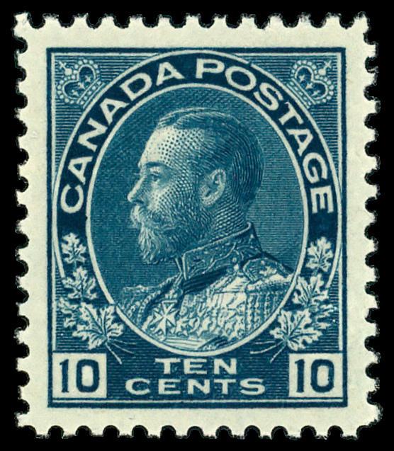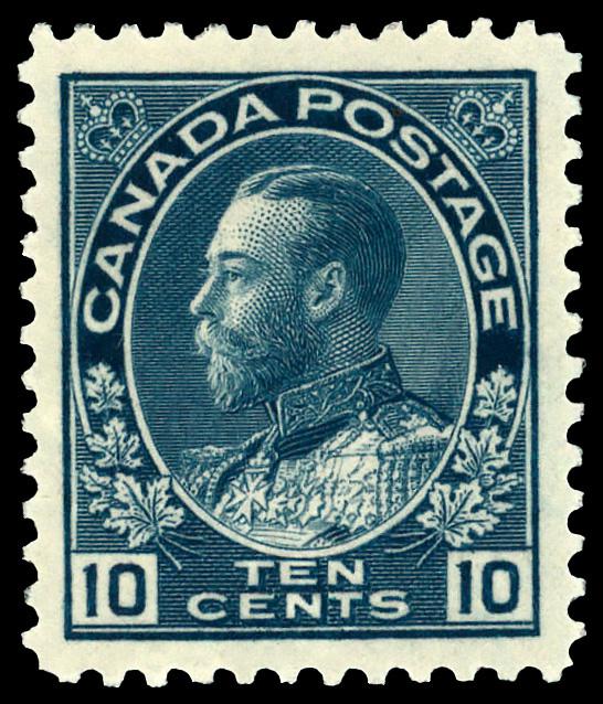 1922, King George V "Admiral", 10¢ light blue, wet printing (Unitrade 117ii), rather well centered within large balanced margins, gorgeous pastel color, o.g., never hinged, Extremely Fine. Scott 117 var. Unitrade C$270 ($200). (Image)