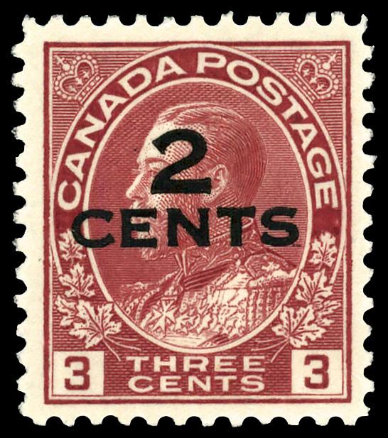 1926, King George V "Admiral", 2¢ on 3¢ carmine (Scott 140), surcharge shifted up, P.O. fresh and well centered, o.g., never hinged, nearly Very Fine. Unitrade 140iii; C$400 ($300). (Image)