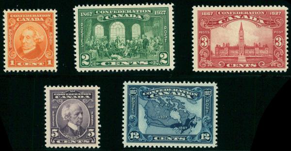 1927, Confederation complete (Scott 141-145), o.g., lightly hinged, Very Fine. Scott $42. (Image)