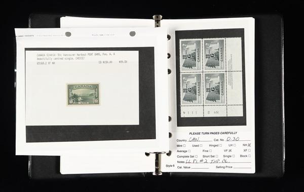 Canada 1948/63 Mint Official Issues Group, small counter book of nice range of mostly NH officials including singles, later plate blocks, air officials and special delivery officials plus a bonus of #O244 NH, also includes O2-4 blocks NH, O11 NH, O21-25 NH, O27 NH, O30 plate block NH (2), O45a block NH, CO1-2 NH, EO1-2 NH, etc., fresh and F-VF with many VF or better; Scott/ Unitrade $600+. Shipping charges apply - weight 1.2 lbs. (Video for this lot) (Image)