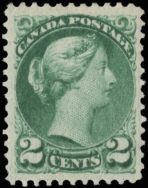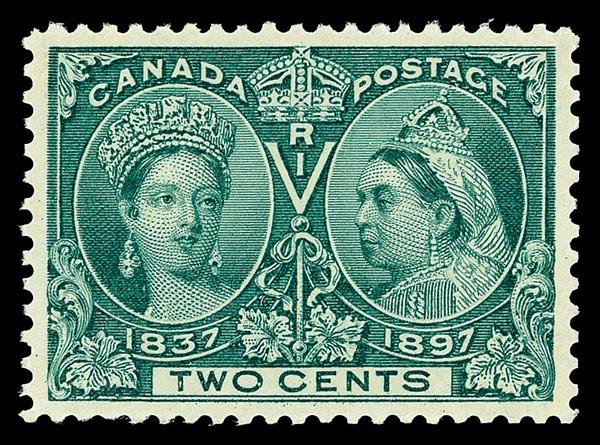 1897, Queen Victoria Jubilee, 2¢ green (Scott 52), o.g., never hinged, pristine with clear detail in sylvan color, sound and beautifully centered, Extremely Fine, with 2025 P.S.E. certificate graded XF 90. SMQ XF 90; $150. Scott $93. (Image)