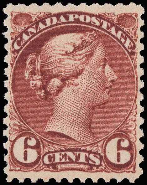 1888, Small Queen, 6¢ red brown (Scott 43), o.g. with just the barest trace of hinge, exceptionally fresh and quite well centered with choice color, Fine to Very Fine, with a 2019 P.S.E. certificate. Scott $225. (Image)