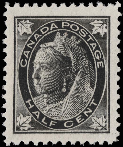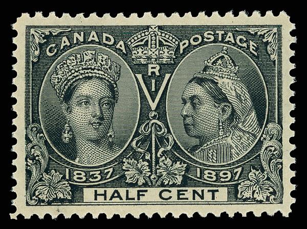 1897, Queen Victoria Jubilee, ½¢ black (Scott 50), intense color, unusually well-centered, o.g., very lightly hinged, Extremely Fine and attractive, with 2025 P.S.E. certificate graded XF-SUP 95 and 2002 PF certificate. SMQ XF-SUP 95. Unitrade 50; C$150 ($110). Scott $110. (Image)