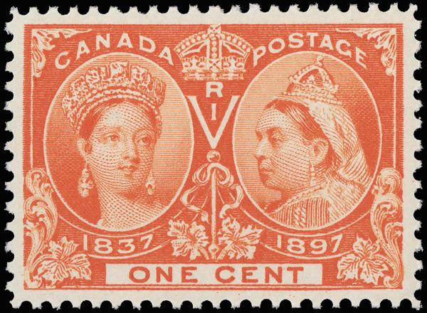1897, Queen Victoria Jubilee, 1¢ orange (Scott 51), o.g., never hinged, bright, fresh and virtually perfectly centered, Extremely Fine, witha 2019 P.S.E. certificate graded XF 90. SMQ XF 90; $110. Scott $75. (Image)