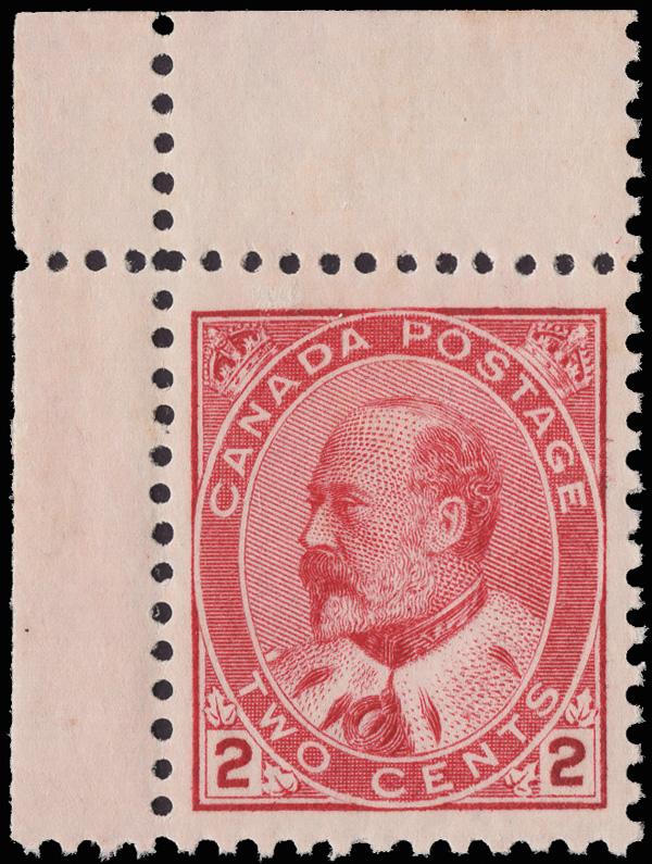 1898, Queen Victoria "Numeral", 2¢ purple (Scott 76), a choice top sheet margin single, o.g., never hinged, wonderfully fresh and virtually perfectly centered, an Extremely Fine gem, with a 2021 P.S.E. certificate graded XF 90. SMQ XF 90; $115. Scott $150. (Image)