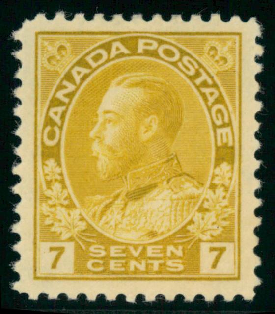 1912, King George V "Admiral", 7¢ yellow ocher (Scott 113), o.g., small hinge remnant, Extremely Fine. Scott $60. (Image)
