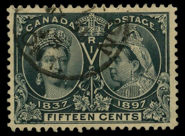 1897, Queen Victoria Jubilee, 15¢ steel blue (Scott 58); tiny hinge thins, Very Fine to Extremely Fine. Scott $175. (Image)