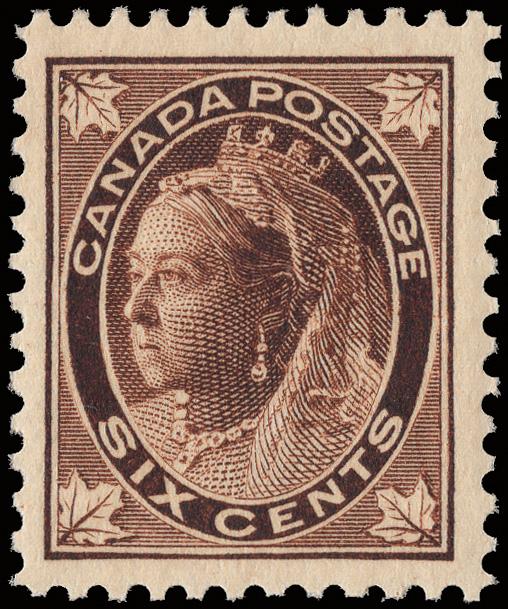 1897, Queen Victoria "Maple Leaf", 6¢ brown (Scott 71), o.g., never hinged, fresh and very well centered, Very Fine to Extremely Fine, with a 2022 Crowe certificate graded VF-XF 85. Unitrade C$750 ($560). Scott $350. (Image)