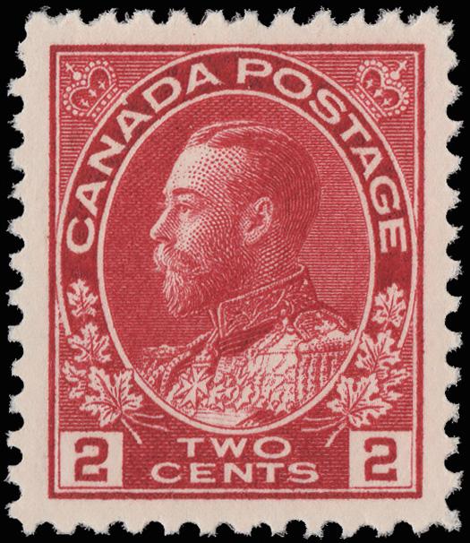1912, King George V "Admiral", 2¢ carmine (Scott 106), o.g., never hinged, wonderfully fresh and beautifully centered, Extremely Fine to Superb, with a 2019 P.S.E. certificate graded XF-SUP 95. Unitrade C$110 ($80). SMQ $140. Scott $65. (Image)