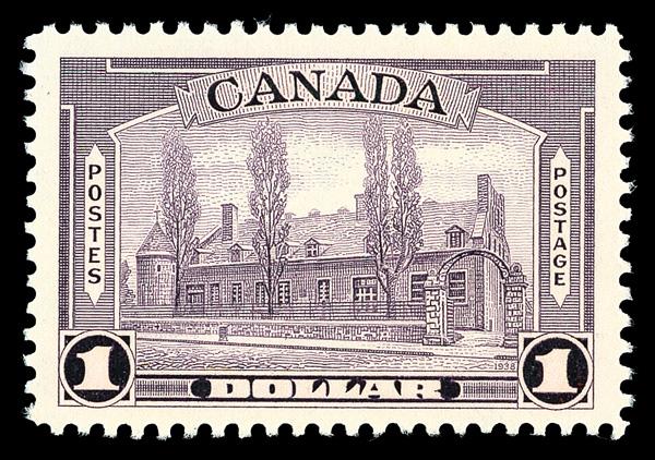 1938, $1 Château de Ramezay, aniline violet (Scott 245 var.), o.g., never hinged, Post Office fresh with crisp impression on bright paper, sound with faint "pink back", Very Fine, with 2019 P.S.E. certificate graded VF 80. SMQ VF 80; $110 as normal. Unitrade 245i; C$225 ($170). Scott $110 as normal. (Image)