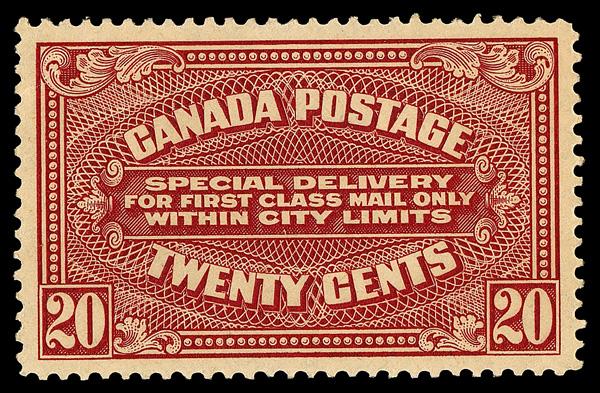 Special Delivery, 1922, 20¢ carmine, dry printing (Scott E2), o.g., never hinged, Superb. Scott $300. (Image)
