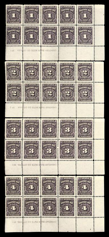 Postage Dues, 1935-65, 1¢-10¢ complete (Scott J15-J20), plate block of 10, o.g., never hinged, Extremely Fine to Superb. Scott $107. (Image)
