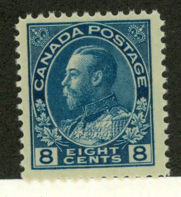 1925, King George V "Admiral", 8¢ blue (Scott 115), single, o.g., never hinged, Fine to Very Fine. Scott $93. (Image)