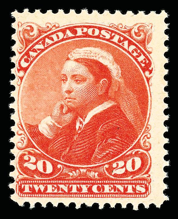 1893, Queen Victoria "Widow's Weeds", 20¢ vermilion (Scott 46), single, o.g., hinged twice, Fine to Very Fine. Scott $400. (Image)