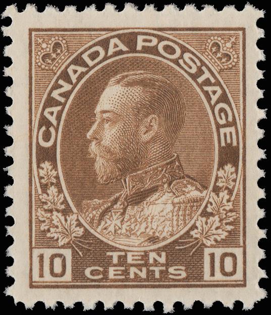 1925, King George V "Admiral", 10¢ bister brown (Scott 118), o.g., never hinged, fresh and beautifully centered, Very Fine to Extremely Fine, with a 2018 P.S.E. certificate graded VF-XF 85. Scott $100. (Image)