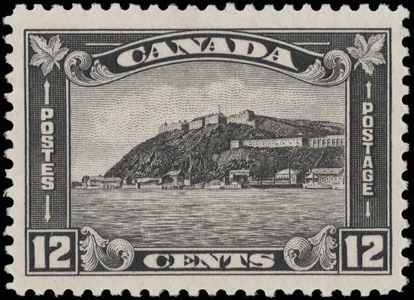 1930, 12¢ Quebec Citadel (Scott 174), o.g., never hinged, exceptionally fresh and well centered, Very Fine to Extremely Fine, with a 2019 P.S.E. certificate graded VF-XF 85. SMQ VF-XF 85; $65. Scott $70. (Image)