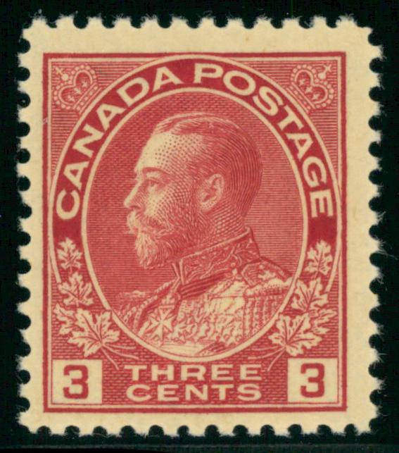 1923, King George V "Admiral", 3¢ carmine, Die I (Scott 109), o.g., never hinged, Fine to Very Fine. Scott $48. (Image)