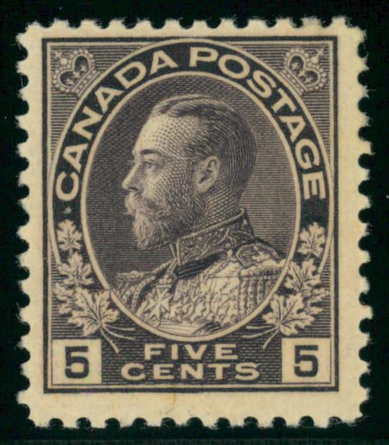 1922, King George V "Admiral", 5¢ violet, wet printing (Scott 112), o.g., lightly hinged, Fine to Very Fine. Scott $40. (Image)
