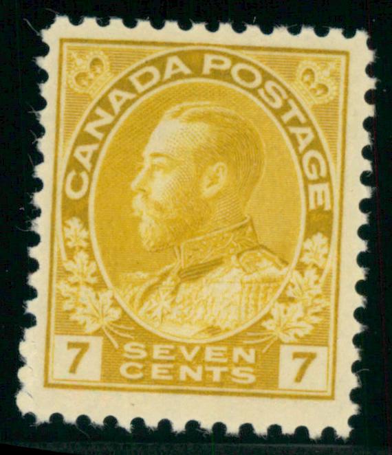 1912, King George V "Admiral", 7¢ yellow ocher (Scott 113), o.g., lightly hinged, Fine to Very Fine. Scott $60. (Image)