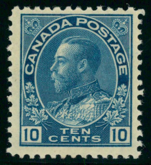 1922, King George V "Admiral", 10¢ blue, dry printing (Scott 117a), o.g., never hinged, Fine to Very Fine. Scott $130. (Image)