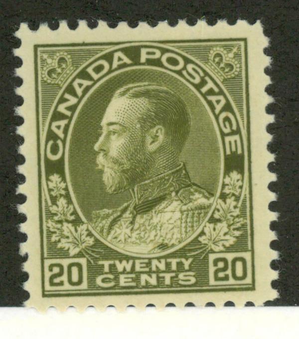 1925, King George V "Admiral", 20¢ olive green, dry printing (Scott 119), single, o.g., hinged, Fine to Very Fine. Scott $110. (Image)