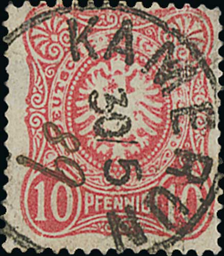 1887-1900 Germany "Deutsche Reichs-Post" issues with cancels of Kamerun (6) or Viktoria (2) comprising 10pf with scarce "30/5 89" c.d.s with year date in manuscript, 20pf (3, two on pieces), 50pf on piece and 2m (3, one on piece), also 10pf strip of three and pieces franked 20pf (3 pieces) or 20pf pair cancelled boxed "AUS / WESTAFRIKA" or "Aus West-Africa / mit / Hamburger Dampfer". S.G. Z1/7, £2,125+. (13). Photo on Page 120. (Image1)