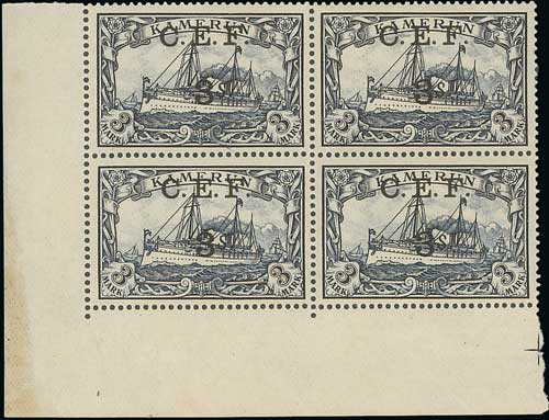 1915 3s on 3m fine used with Duala c.d.s. S.G. 12, £1,000. Photo on Page 120. (Image1)