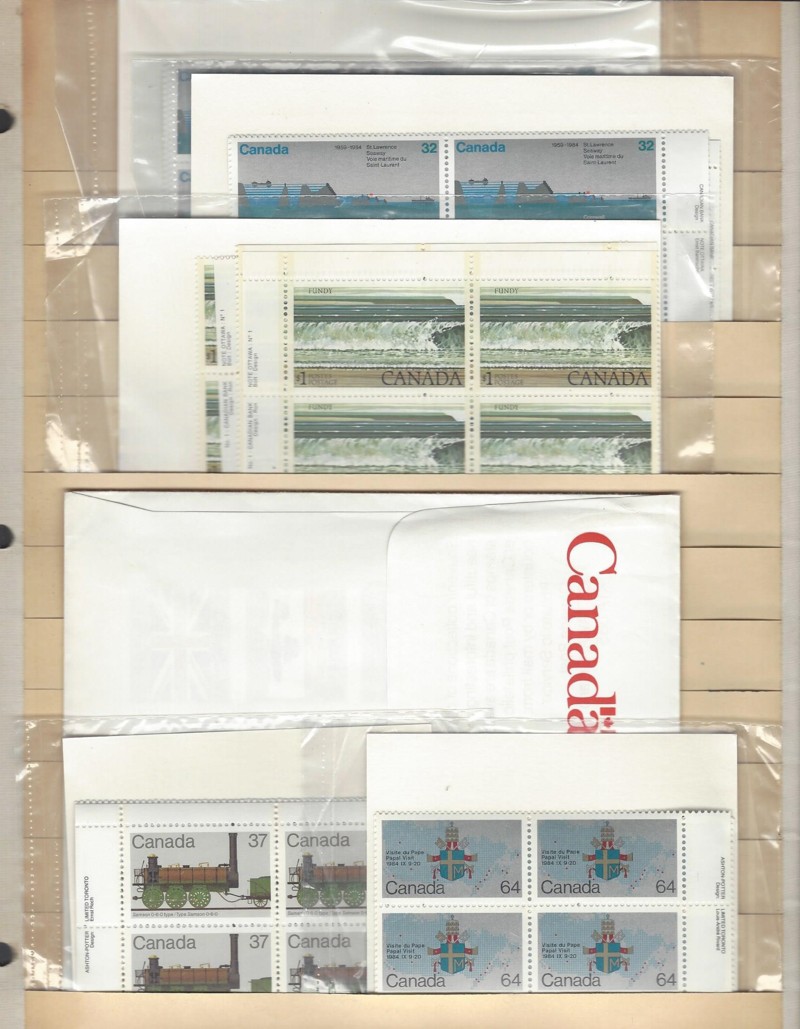 ACCUMULATION, Mint Stamps, Mostly 1979-84 Period, Includes 110 Matched Sets of Corner Blks. (in Post Office Packages), Plus Some Larger Multiples, Sound Cond., OG, MNH, Face Value is $526.00 (Canadian), F-VF (2. lbs.) (Image)
