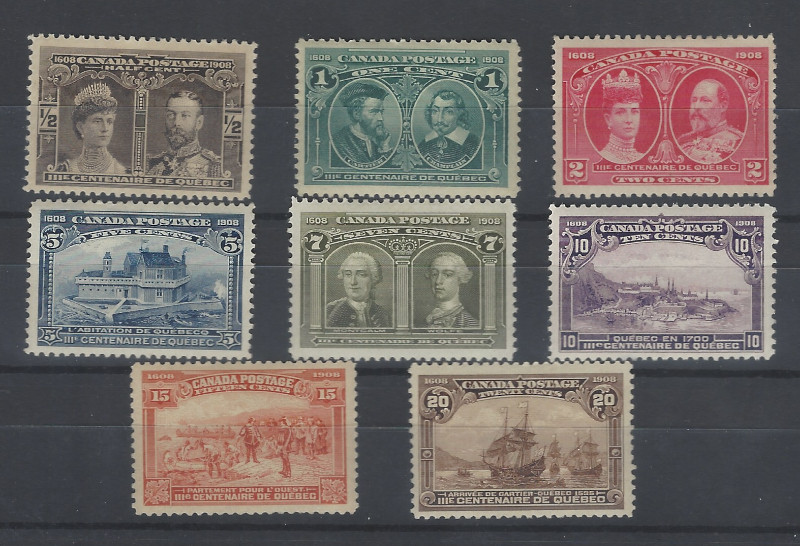 96-103 (8), Cmpt. Set, "Tercentenary" (1908 Issue), Unused, OG, #96-99 are MNH, #100-103 are LH, Sound Cond., VF Centering for this Issue, SCV is $1,219.00 (Image)
