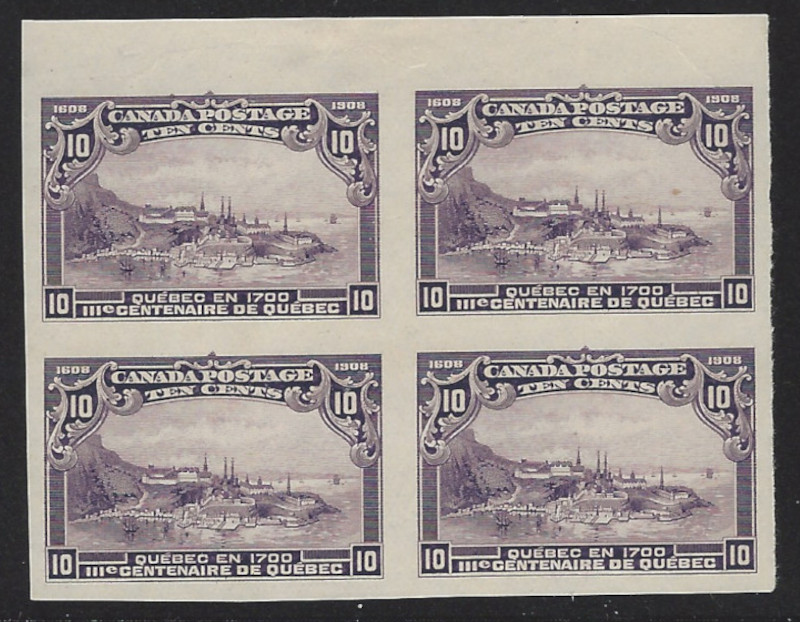 101a Imperf. Blk. of 4, "10 c. Quebec" (1908 Issue), Unused, NGAI, Sound Cond., VF, SCV is $1,500.00+ (Image)