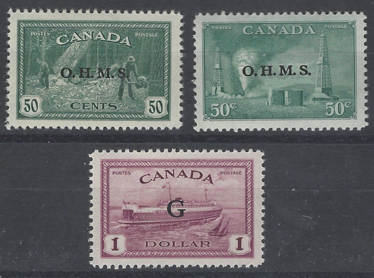 O9, O11, O25, "Official" Ovpts., 1949-50 Issues, Unused, OG, Sound Cond., VF, SCV is $380.00 (Image)
