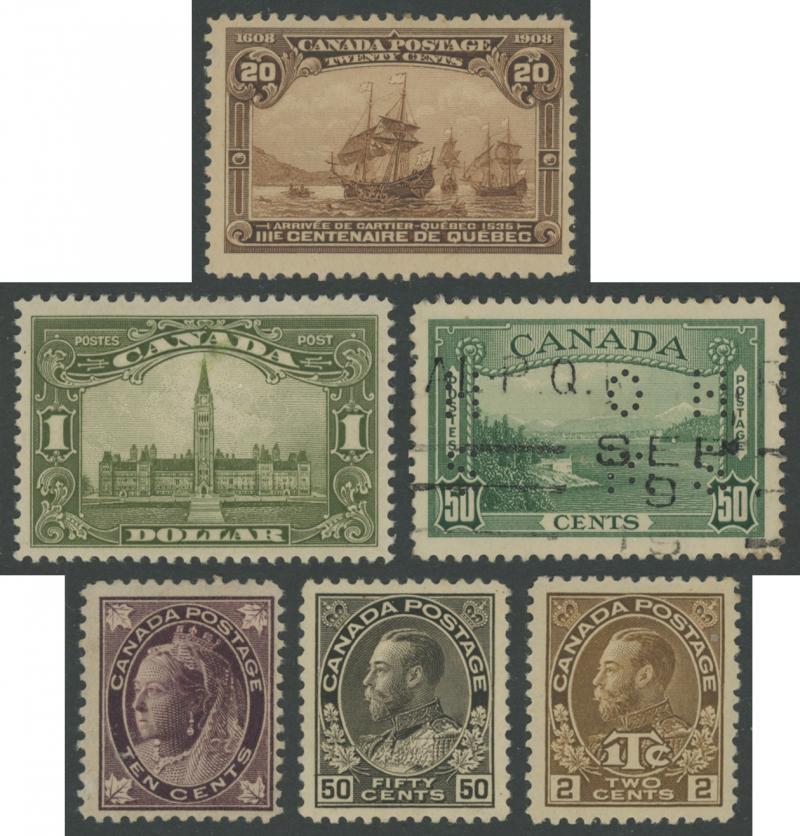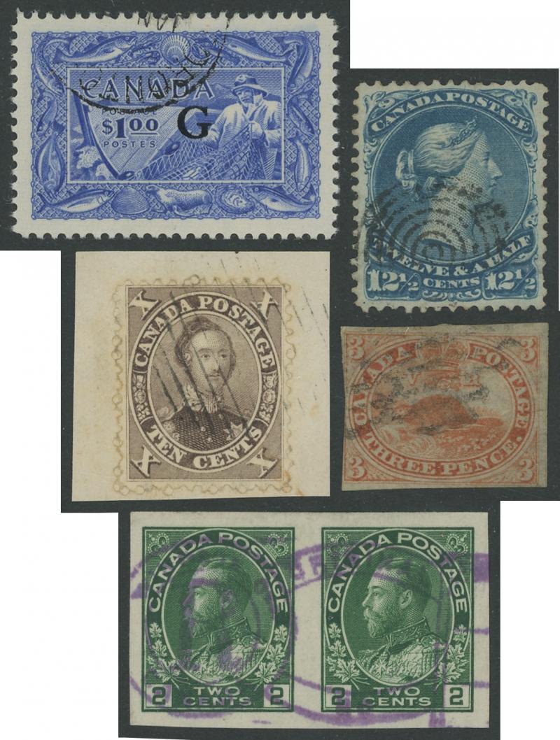Neat & attractive pre-QEII collection including Imperf 3d Beaver 1859 Decimal Currency 10c x3 (one very fine on-piece) & 12½c x2, Large Queens 6c x2 & 12½c x2 & 15c x4, Widow's Weeds 20c & 50c x3, Jubilee to 50c, Maple Leaves to 20c, KEVII to 50c x2, Quebec Centenary set, Admirals with coils including Perf 12xImperf strip of 4 & Imperf pairs, KGV booklet panes x10, some Special Delivery & Official issues including 'OH/MS' punctures, etc, generally fine to fine but with some dubious cancels, STC $C8000+.