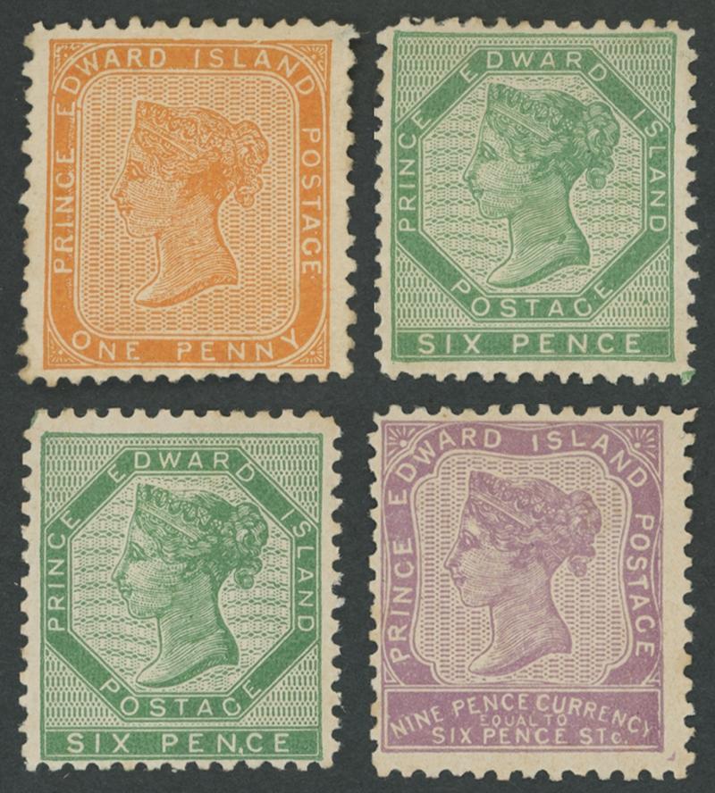 PRINCE EDWARD ISLAND: 1962-72 mint selection including QV Sterling Currency Perf 11½-12 1d orange-buff unused, 6d yellow-green unused, 6d blue-green * and 9d violet unused, plus New Currency range mostly *, a few with minor aging marks, Cat £800+.