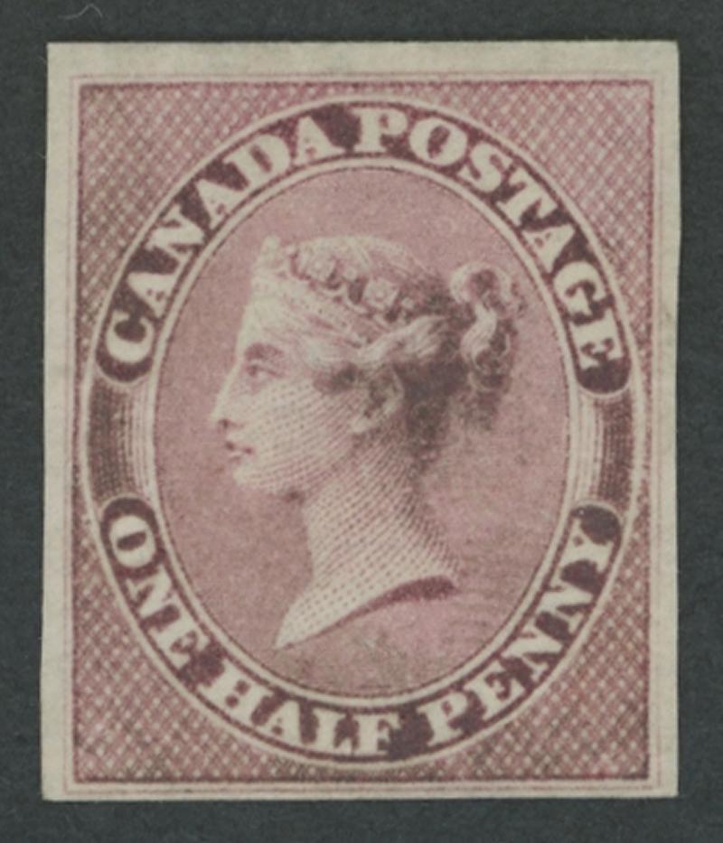 PROVINCE OF CANADA: 1857 Wove Paper Imperforate QV ½d rose SG 17 (Scott 8), margins good to large, light but indistinct numeral cancel, Cat £650 (US$700). (Image1)