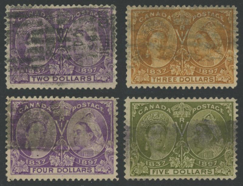 1897 Queen Victoria's Diamond Jubilee 50c ultramarine, $2 bright violet, $3 bistre & $5 olive-green between SG 134 & 140, well-centred, very fine to superb with steel cds cancels, Cat £1680.