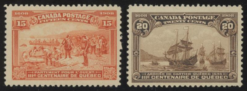 1908 Quebec Tercentenary ½c to 20c set SG 188-195 (Scott 96-103), above-average centring for this issue, a few with tiny hinge remainders but most are lightly mounted, Cat £550 (US$978).