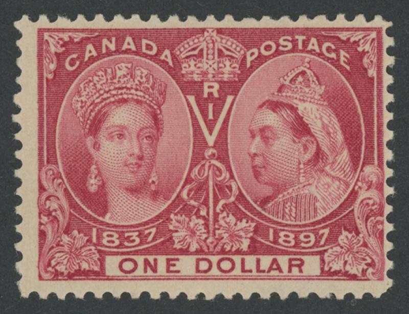 1897 Queen Victoria's Diamond Jubilee $1 lake SG 136 (Scott 61), very lightly mounted, Cat £600 (US$750). (Image1)