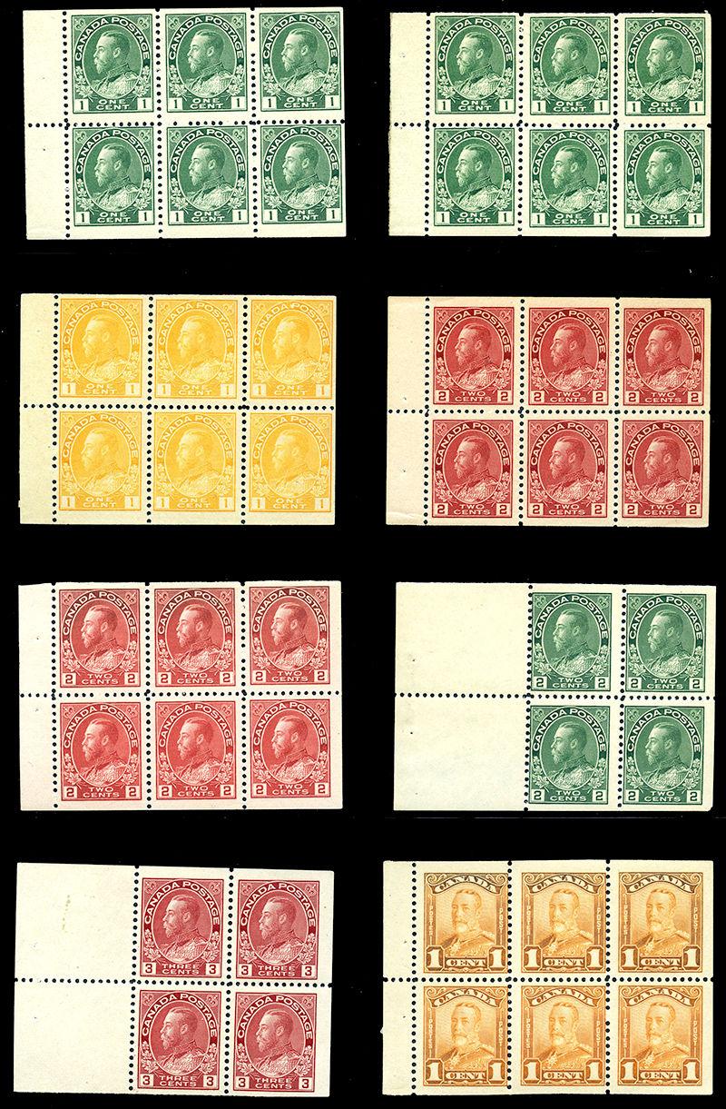BOOKLET PANES: 104a/306a: 25 different of 4 or 6 incl Admirals, Scroll cpl, several Arch, Medallion and Maple Leaf, etc, several are nh, mostly clean and f-vf. (Image)